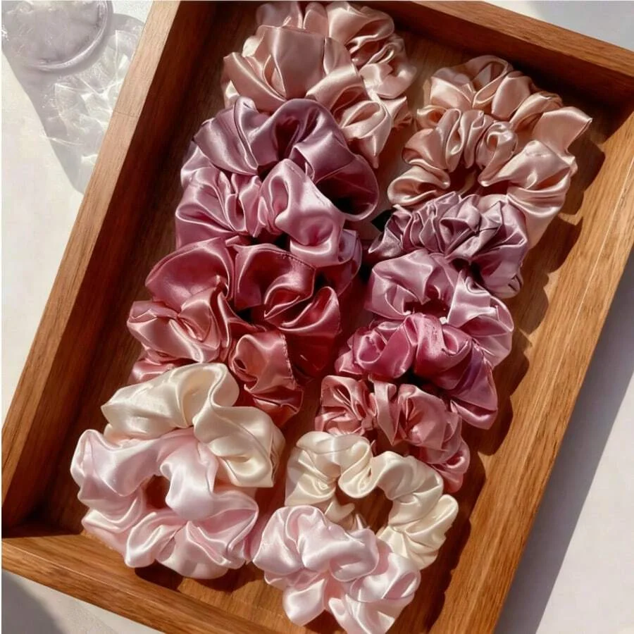 16-piece set of soft satin hair ties in pink and brown colors | suitable for wearing in all settings